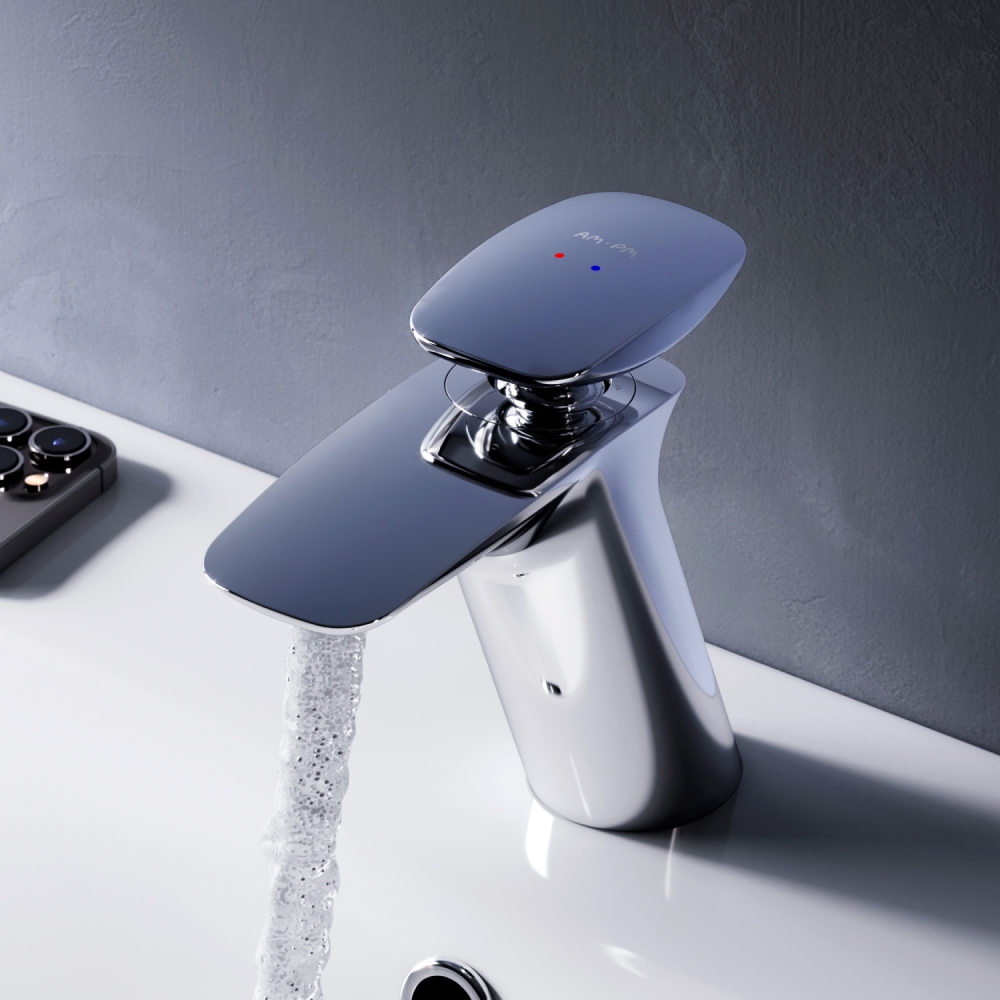 Наклон и плавный изгиб корпуса смесителя с одной стороны придают особую динамику дизайну с другой — обеспечивают удобство использования на высокой раковине.