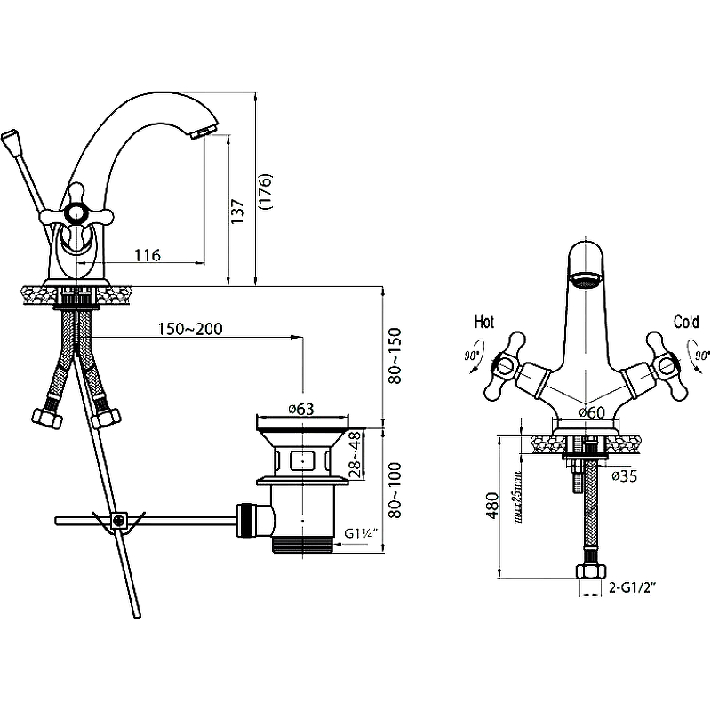 - Излив: фиксированный.