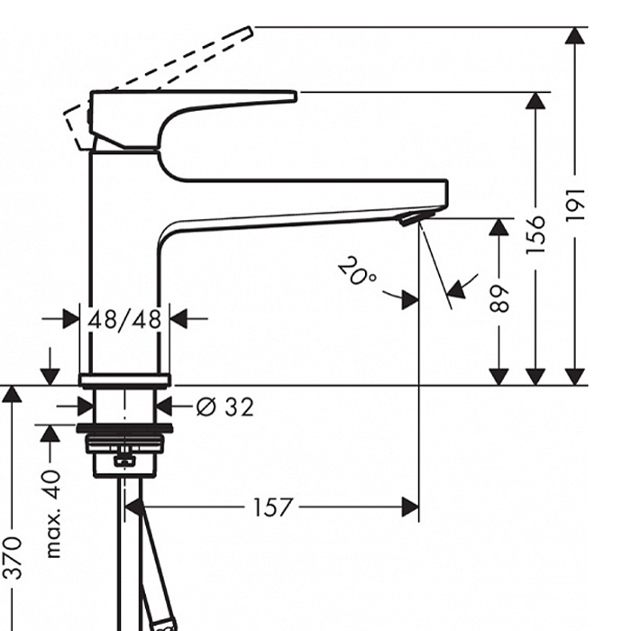 - Длина излива: 15.7 см