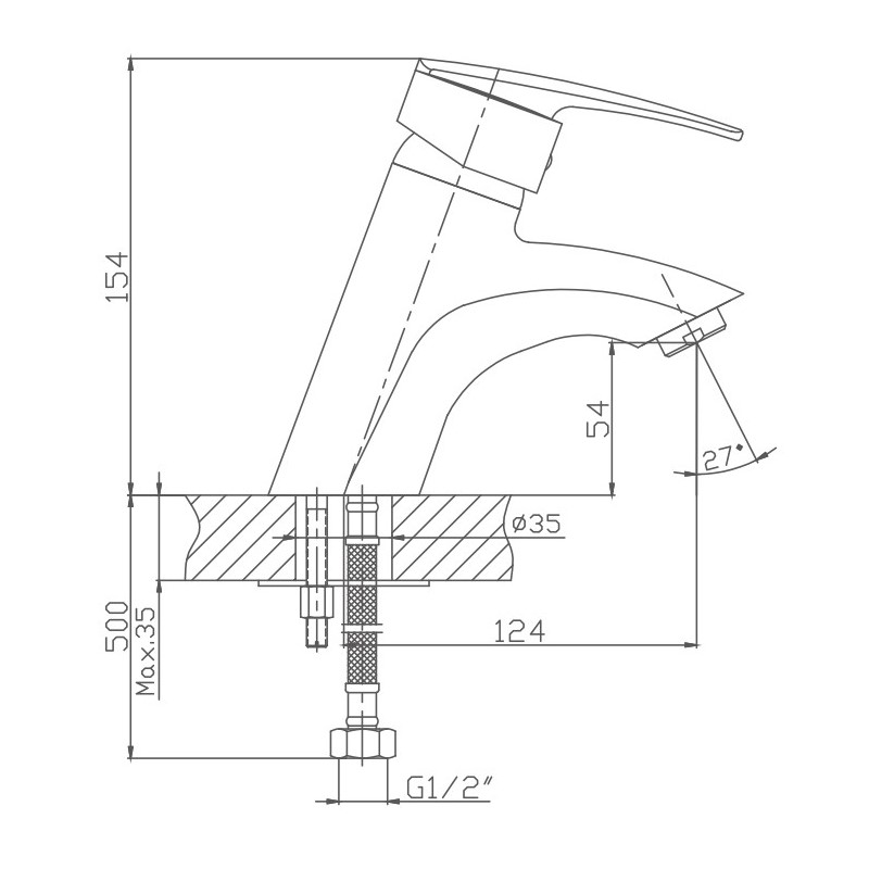 Смеситель для раковины Haiba. Керамический картридж 40 мм. Изготовлен из латуни. Максимальная глубина монтажа 35 мм. Диаметр монтажного отверстия 35 мм.
