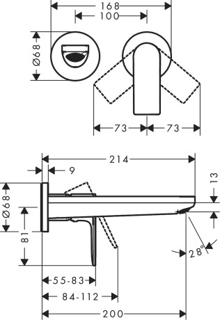 · состоит из: смеситель для раковины, однорычажный, скрытого монтажа, настенный, слив/перелив