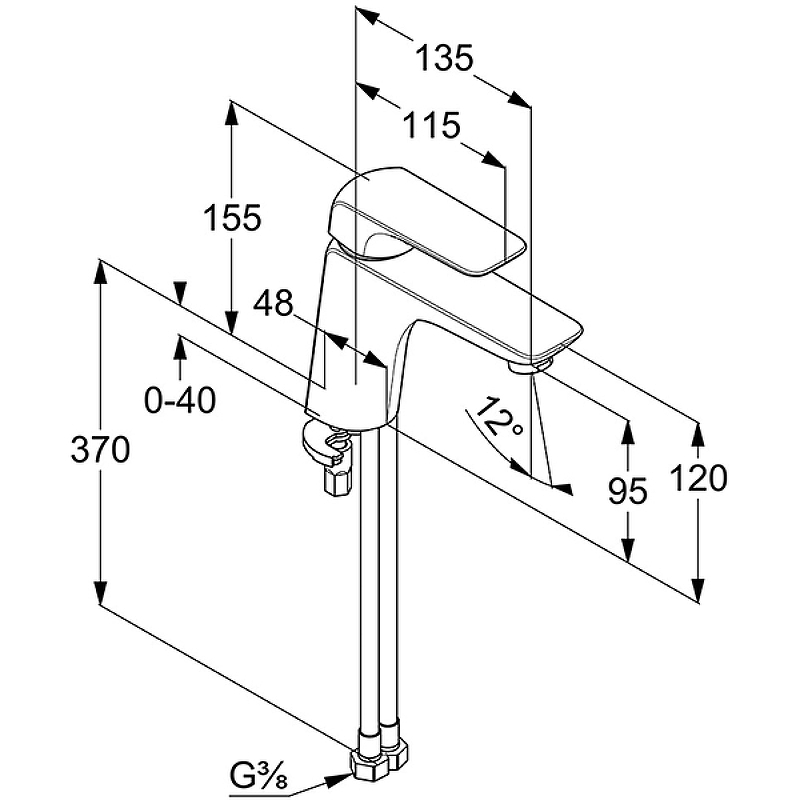 - Гибкая подводка: G 3/8.