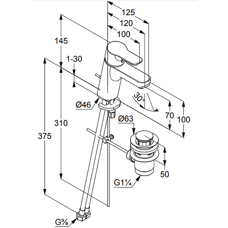 Смеситель для раковины Kludi Pure Easy 373820565 с донным клапаном. Цвет: хром.