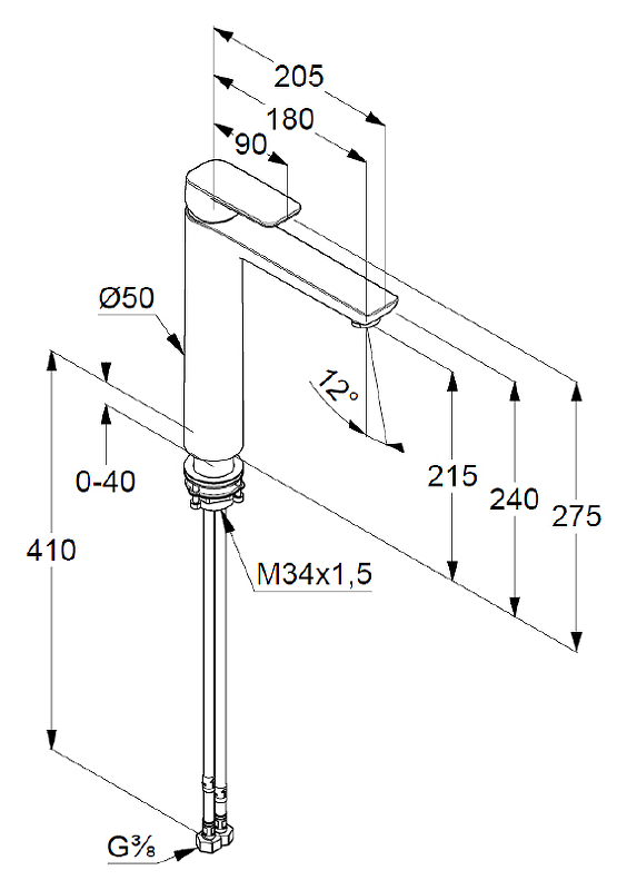 - Подключение: гибкая подводка G 3/8.