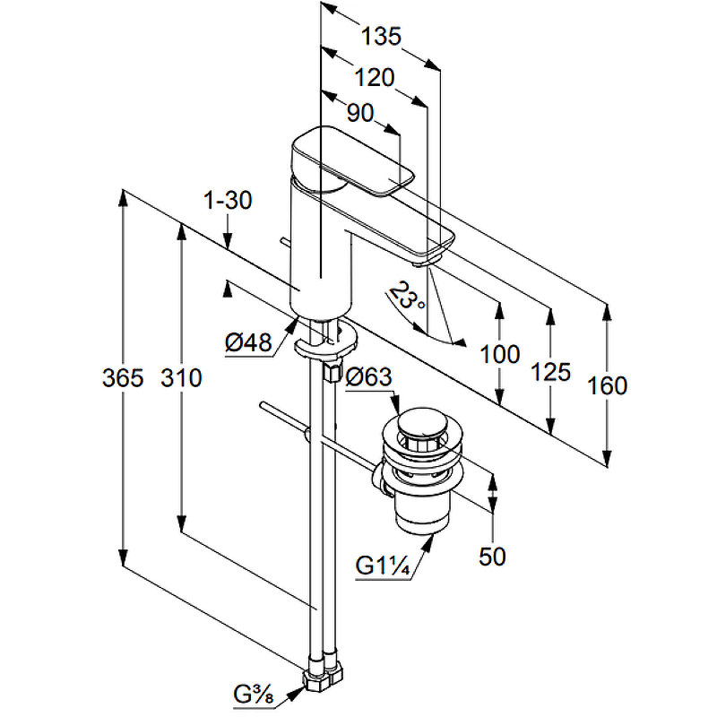 - Донный клапан G 1 1/4.