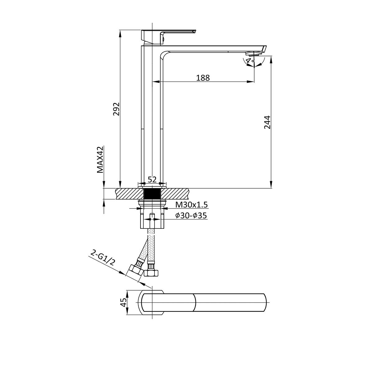 35мм картдриж, 2 шланга подачи воды в комплекте