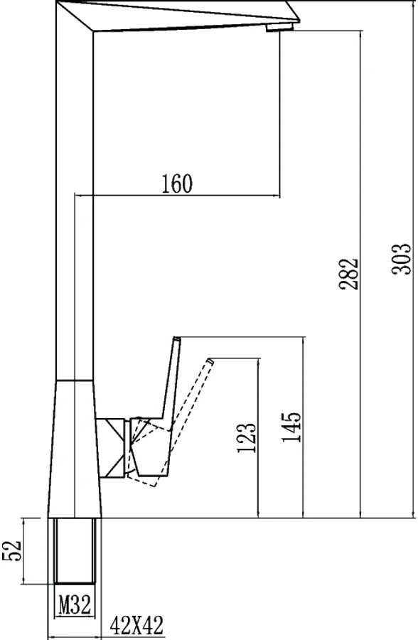 - Высота излива (расстояние от основания до крана): 28.2 см