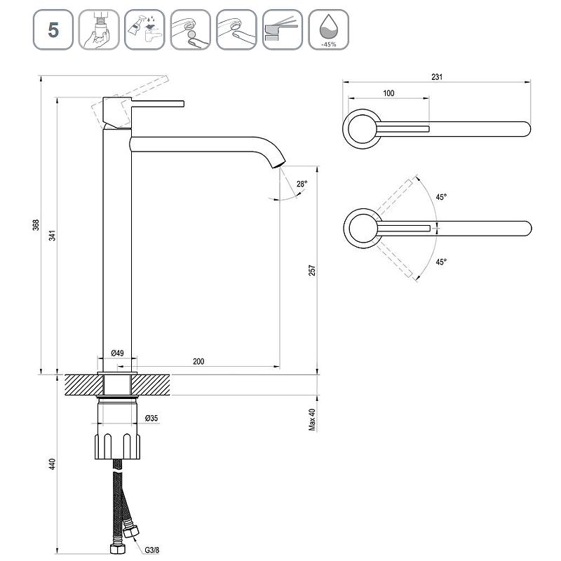 - Стандарт подводки: G 3/8.