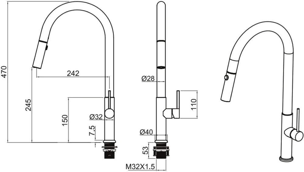 - С выдвижным изливом