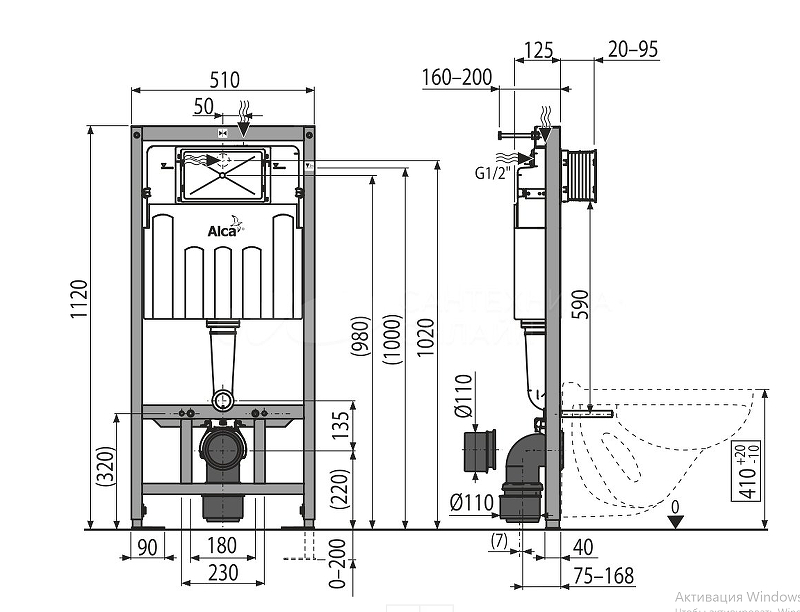 Инсталляция Alcaplast AM101/1120-4:1 RU M571-0001 для унитаза.