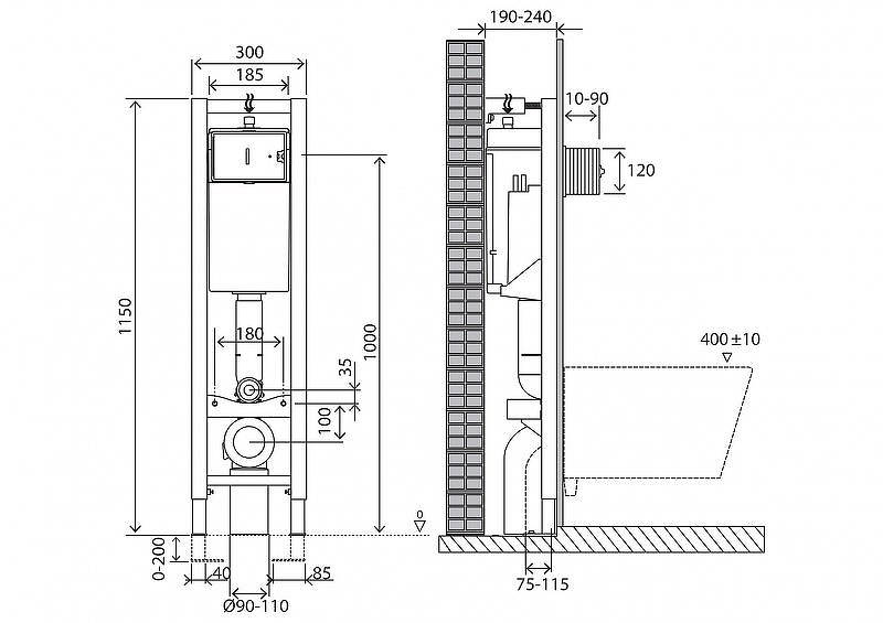 - Совместима с моделями подвесных унитазов с расстоянием между креплениями 180 мм.