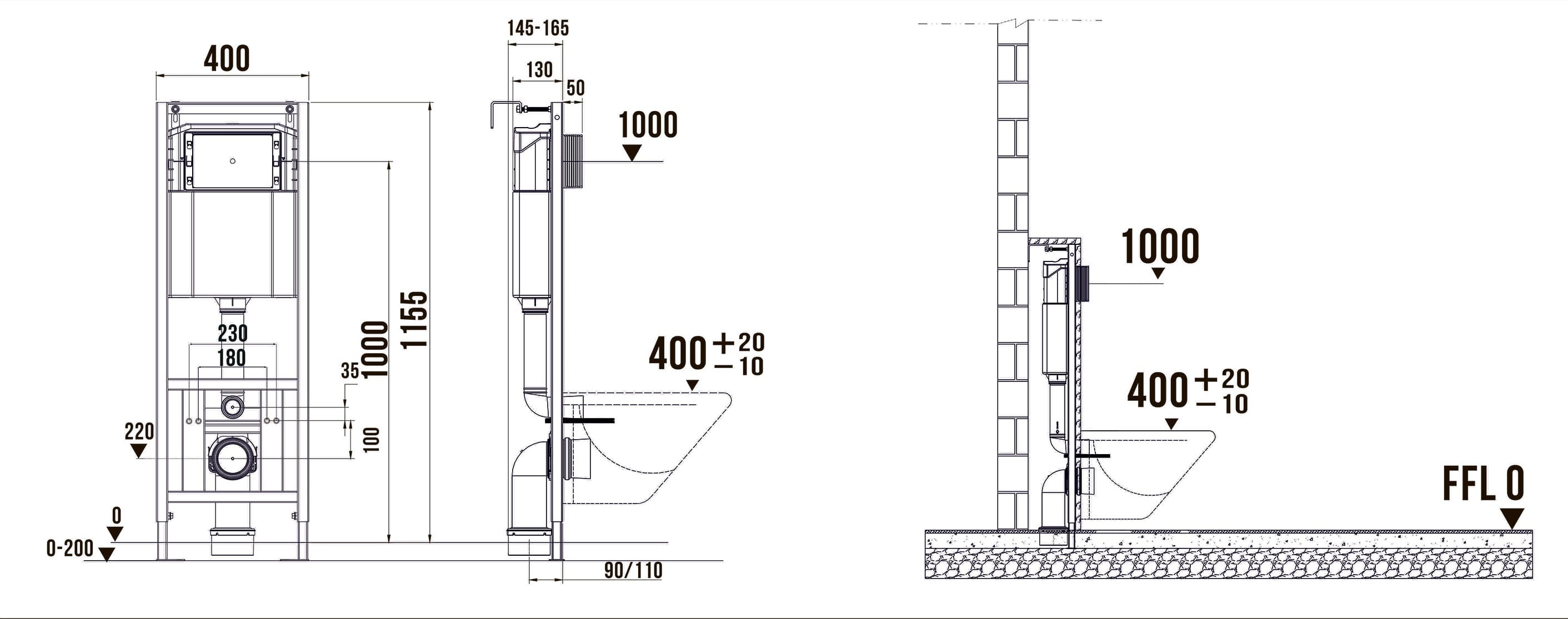 Система инсталляции для подвесного унитаза 400х1160 (4 в 1 с клавишей смыва) Terminus