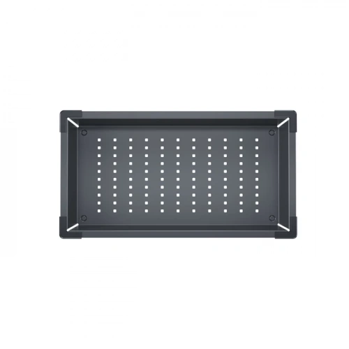 Стильный полезный аксессуар – коландер в трендовом графитовом цвете – дает новые возможности для интересных дизайнерских решений на кухне. Отверстия на дне позволяют использовать его как дополнительную рабочую поверхность: для разморозки и хранения продуктов, сушки посуды и столовых приборов, мытья овощей и фруктов.