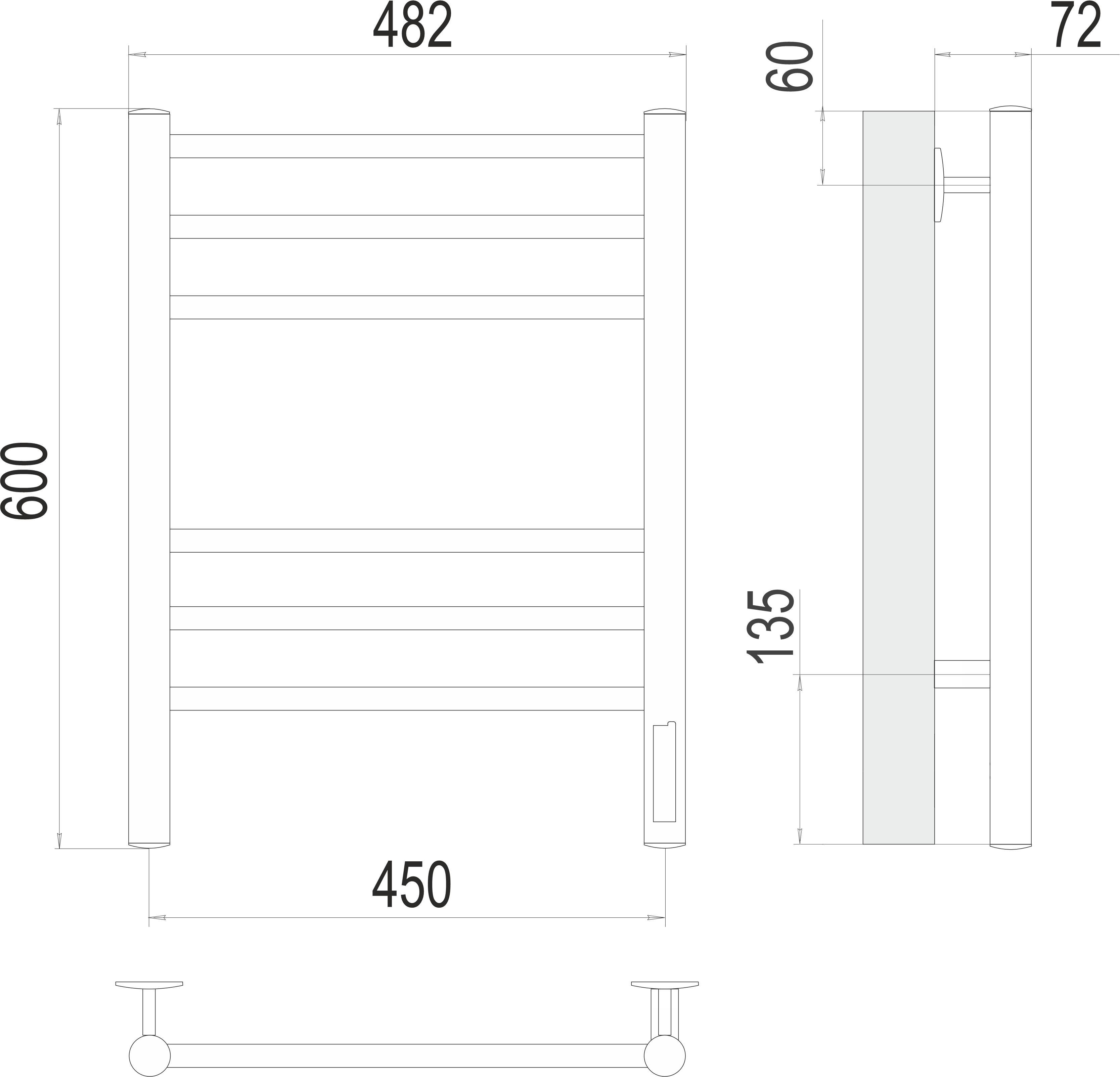 Аврора П6 450х600 электро КС ЧЕРНЫЙ МУАР ( new встроен диммер) Полотенцесушитель TERMINUS