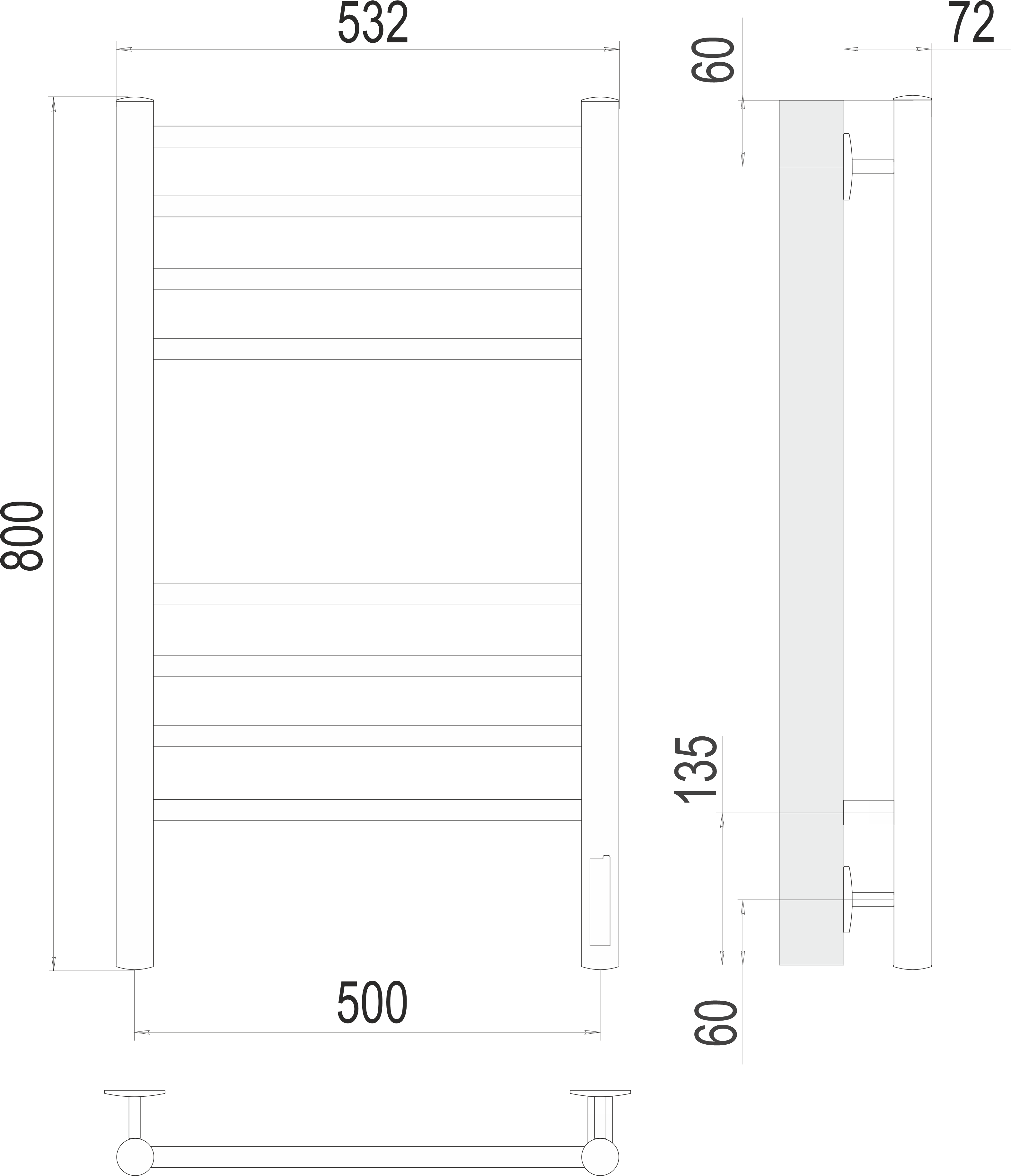 - Подключение полотенцесушителя: электропроводом с вилкой/скрытое электрическое соединение; скрытое электрическое соединение; электропроводом с вилкой