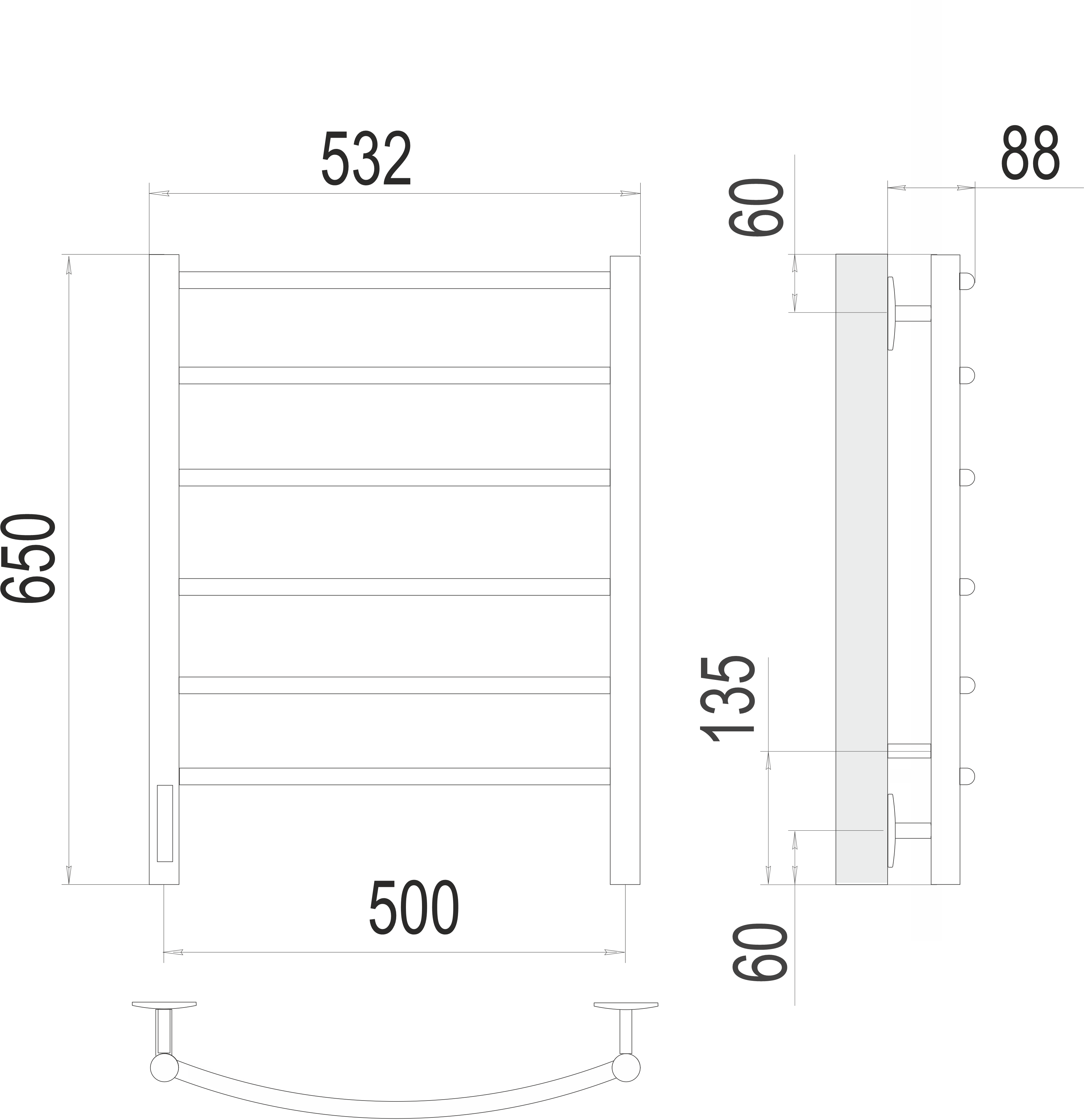 Полотенцесушитель "Terminus Классик", нержавеющая сталь, скрытый электроподвод