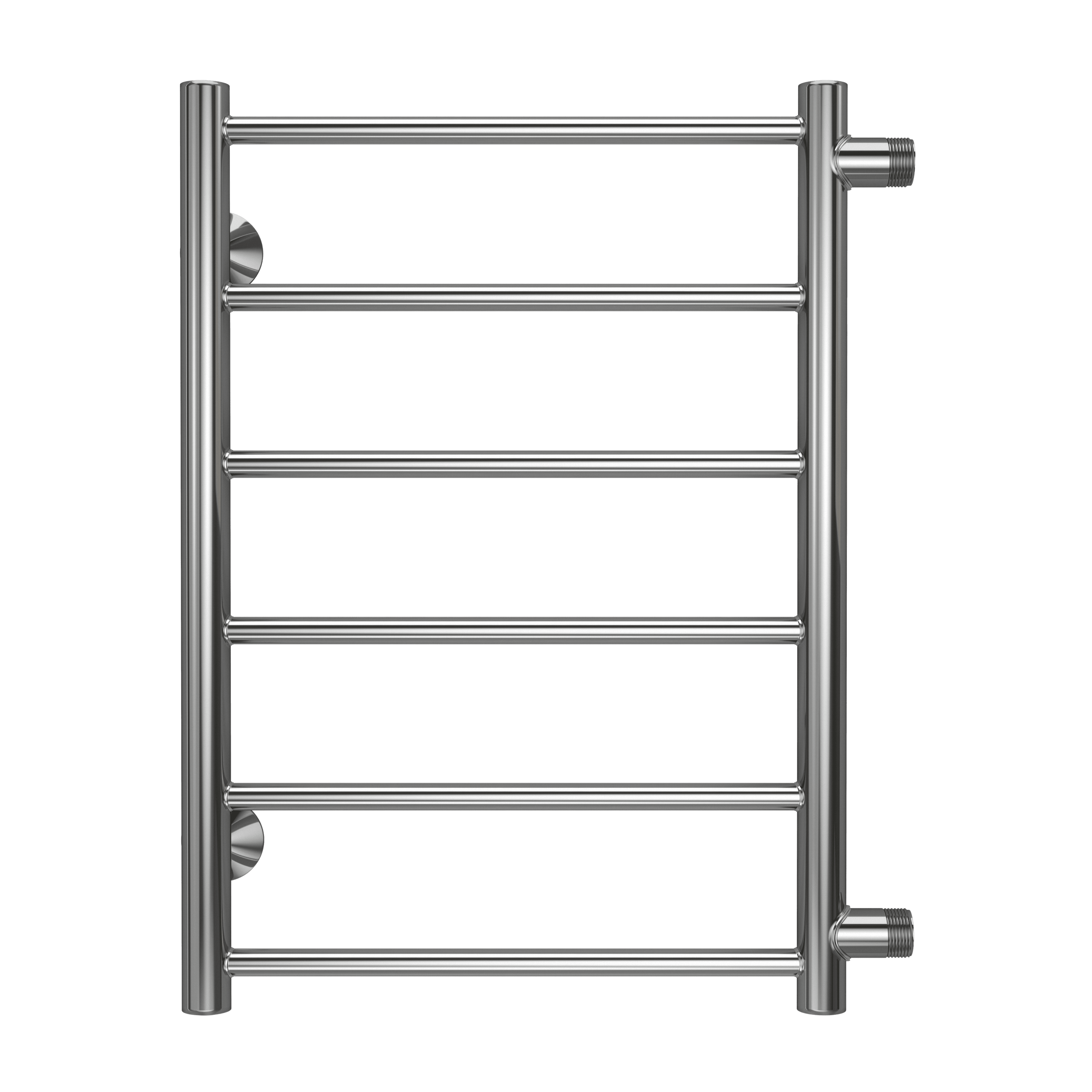 Модель Аврора относится к полотенцесушителям в форме лестницы. Прямые строгие и лаконичные линии впишутся в любой дизайн. Стоит обратить внимание, что из-за своей конструкции, для полотенцесушителя необходим боковой подвод воды. Полотенцесушитель Аврора можно монтировать в систему отопления. В комплекте идет кран Маевского, который позволит стравить воздух при завоздушивании системы. Водяные модели полотенцесушителей Terminus из нержавеющей стали изготавливаются из электросварной трубы высочайшего качества марки стали AISI 304 (08Х18Н10) по DIN 17457 и DIN 11850, диаметром 32 мм с толщиной стенки 2мм. В сплаве присутствуют легирующие компоненты, такие как никель и хром, которые делают трубу устойчивой к воздействию неблагоприятных факторов окружающей среды, а также улучшают внешний вид изделия. Электросварные трубы, которые применяются при изготовлении полотенцесушителей, производятся по особой медленной технологии, которая позволяет получить прочный и практический незаметный шов. Полотенцесушители водяные Терминус Аврора предназначены для подключения к системе водяного отопления и горячего водоснабжения с температурой до 115 градусов C и рабочим давлением до 1,5 МПА (15 атм). Характеристики: Тип: водянойТруба: AISI 304Тип подключения: боковоеМежосевое расстояние (боковое подключение): 500 ммРазмер (ширина х высота): 432 х 600 ммКоличество перекладин: 6Диаметр основной трубы: 32 ммДиаметр дополнительной трубы: 18 ммТолщина стенки: 2 ммСоединительная резьба: трубная цилиндрическая внутренняя G1 (1 дюйм)Материал: нержавеющая сталь AISI304 (12Х18Н10), DIN17457 (ГОСТ 5632-72)Вид обработки: полировка 12-го класса чистотыРабочее давление: 8 атмИспытательное давление: 15 атмМаксимальная температура теплоносителя: 115 градусов СНазначение: для эксплуатации в системе горячего водоснабжения и отопленияСтрана: РоссияПроизводитель: TerminusГарантийный срок: 5 летКомплект поставки: полотенцесушитель - 1 шт, декоративный колпачок - 2 шт, кран Маевского G1/2 - 1 шт, заглушка - 1 шт, телескопическое крепление к стене 2 шт. Фитинги подключения приобретаются отдельно. В нашем интернет-магазине можно купить большой прямой полотенцесушитель в форме лестницы Аврора с боковым подключением производства Terminus (Терминус) для сушки текстильных изделий и отопления помещений, Россия, с доставкой курьером в г. Екатеринбург, либо транспортной компанией по всей территории РФ. При заказе от 3000,00 рублей доставка по городу Екатеринбургу бесплатно.