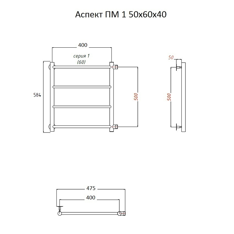 Водяной полотенцесушитель Тругор Аспект 1 ПМ 60x40 Хром