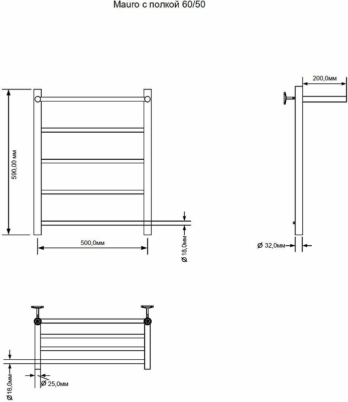 Водяной полотенцесушитель Aquanet Mauro 60x50 282320 с полкой.