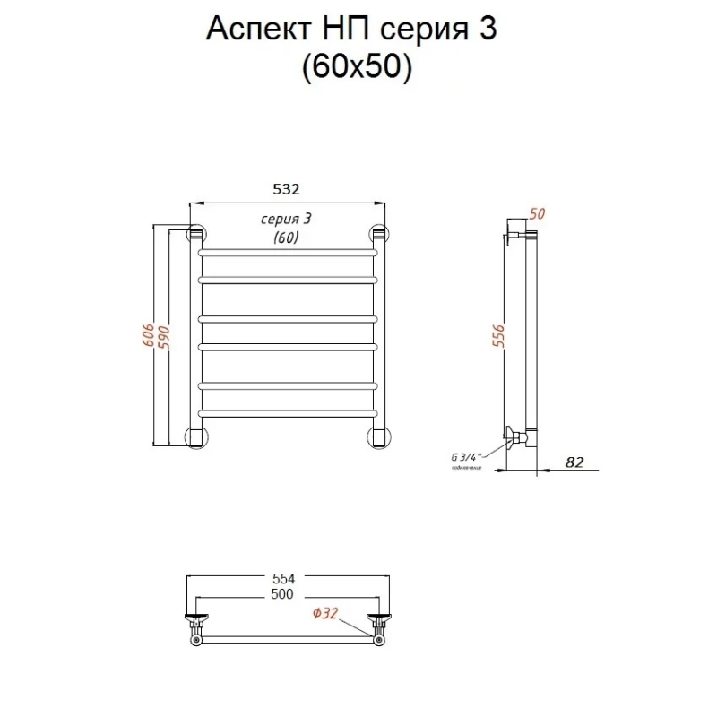 Водяной полотенцесушитель Тругор Аспект 3 НП 60x50 Хром