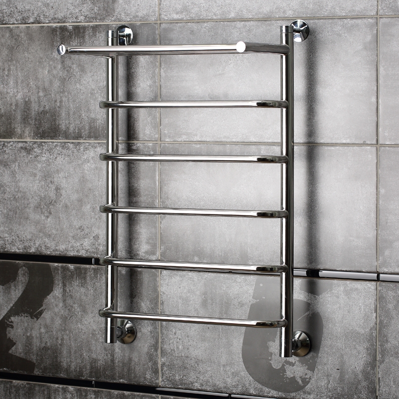 Водяной полотенцесушитель Тругор Браво 1 П НП 80x50 см с полкой, цвет хром. Используется для просушки влажных вещей и полотенец, а также дополнительного обогрева помещения. Изготовлен из пищевой нержавеющей трубы марки AISI 304, которая отличается стойкостью к высоким температурам и образованию коррозии, выдерживает значительные перепады давления.