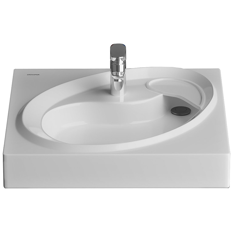 <p>Подвесная раковина Grossman Alvaro 60 1606001 для установки над стиральной машиной - украсит пространство вашей ванной комнаты и позволит использовать его с максимальной пользой. Воплощение современного подхода к дизайну: красота формы в сочетании с удобством использования в малых помещениях.<p>Бортики раковины и сливная накладка справа позволяют удобно разместить мыльницу и другие предметы.</p><p>Подходит для стиральной машины глубиной до 50 см.</p><p>Характеристики:</p><ul><li>Цвет: белый.</li><li>Материал: искусственный мрамор.</li><li>Верхний слой Гелькоута.</li><li>Габариты: 60x11x60 см.</li><li>Форма: квадратная.</li><li>С одним отверстием под смеситель.</li><li>Монтаж: крепится на кронштейны над стиральной машиной.</li></ul><p>В комплекте поставки:</p><ul><li>Раковина.</li></ul></p>
