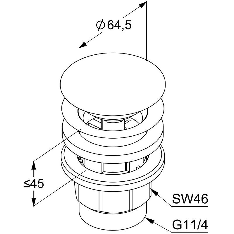 Донный клапан Kludi 1042639-00 с отверстием для перелива.