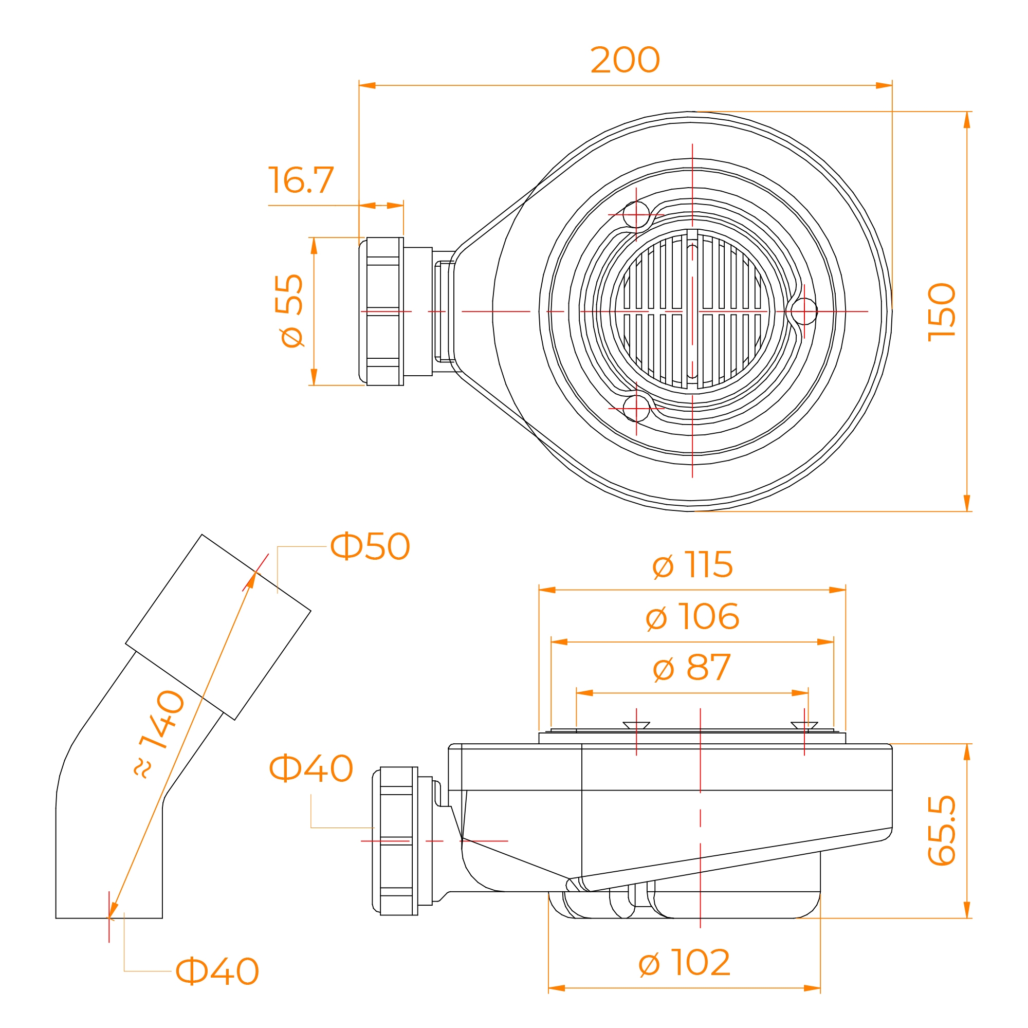 Сифон для душевых поддонов RGW S-010-1 Волна бетон 90 мм