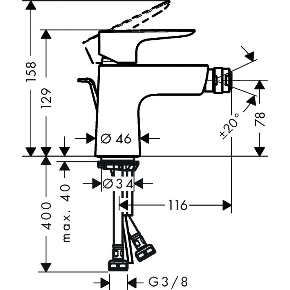 Смеситель для биде Hansgrohe Talis E 71720670 с донным клапаном.