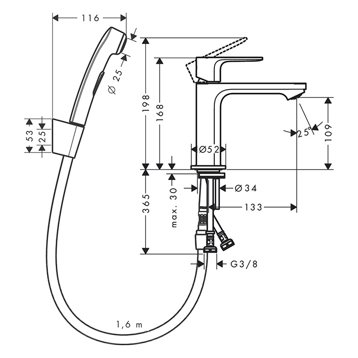 HG Rebris S Смеситель для раковины 110, с гигиеническим душем, цвет черный матовый