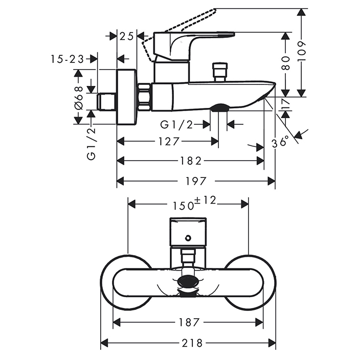 HG Rebris E Смеситель для ванны, внеш.монтаж, цвет хром