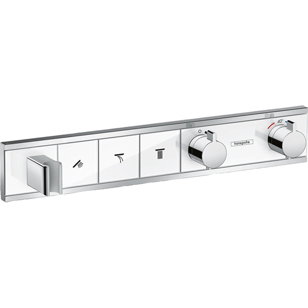 картинка HG Ecostat Select Термостат настенный для ванны на 2 источника, с изливом 192мм, с полочкой из безопасного стекла, цвет белый/хром от магазина Сантехстрой