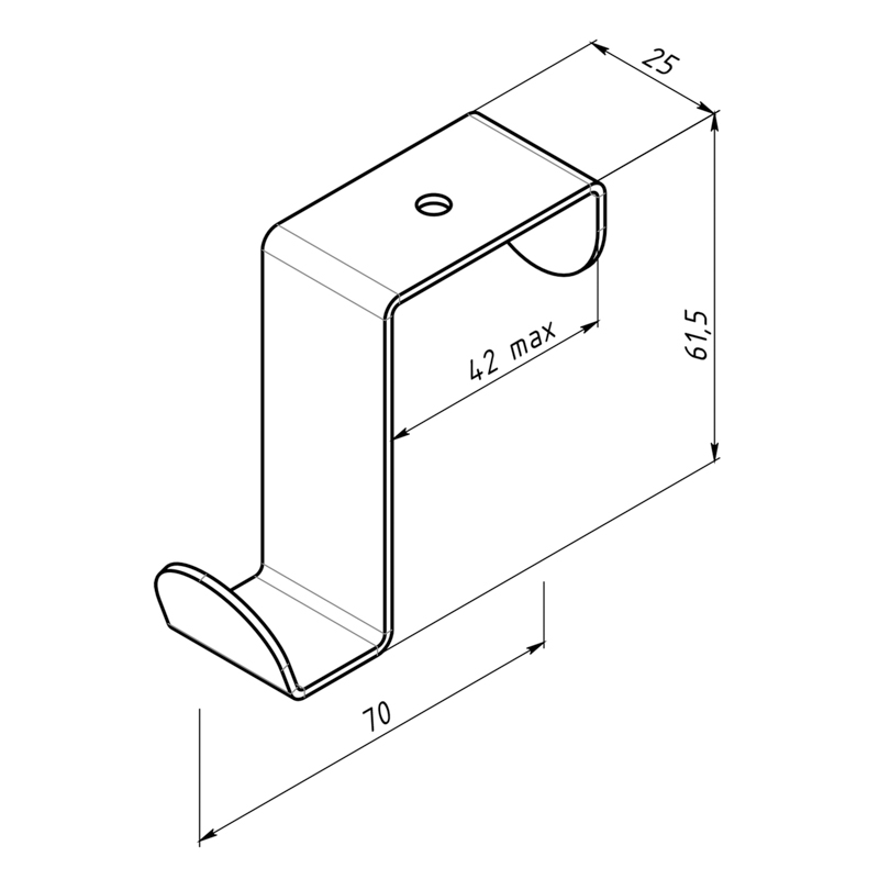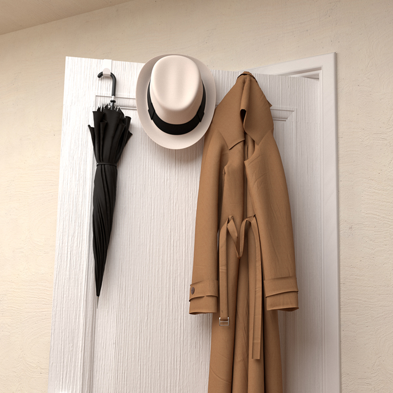 Изделие предусматривает возможность размещения повседневной одежды, курток, сумок, зонтов и т.д. Держатель совместим со стандартными дверьми, максимальная ширина которых не превышает 42 мм.