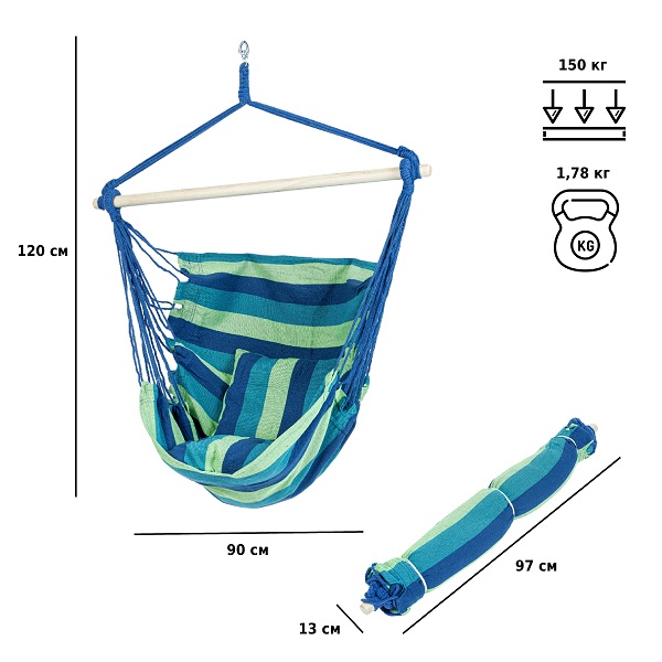 Подвесные качели- гамак Green Glade – это гарантия отличного времяпровождения на свежем воздухе. В них можно уютно расположиться с любимой книгой в руках, спрятаться от жары в тени деревьев и подремать. Мягкая подушка в комплекте подарит удобство и комфорт при сидении. Яркие и жизнерадостные расцветки ткани зарядят Вас позитивной энергией и улучшат настроение.