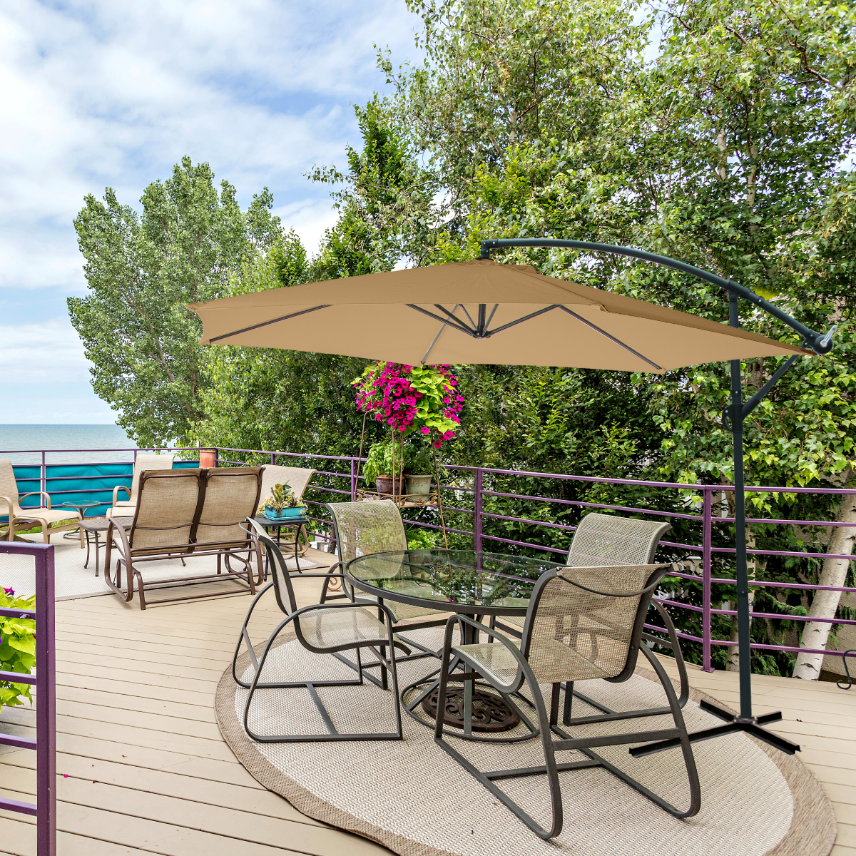 Большой зонт Green Glade – незаменим для отдыха на даче, загородном участке и около бассейна. Он защитит вас и ваших детей от яркого солнца и создаст комфортную тень. Купол зонта легко открывается с помощью лебедки. Благодаря боковому расположению стойки под куполом можно установить любую пластиковую мебель: от шезлонга до обеденного стола.