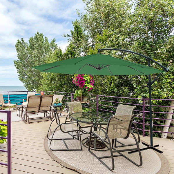 Большой зонт Green Glade – незаменим для отдыха на даче, загородном участке и около бассейна. Он защитит вас и ваших детей от яркого солнца и создаст комфортную тень. Купол зонта легко открывается с помощью лебедки. Благодаря боковому расположению стойки под куполом можно установить любую пластиковую мебель: от шезлонга до обеденного стола.