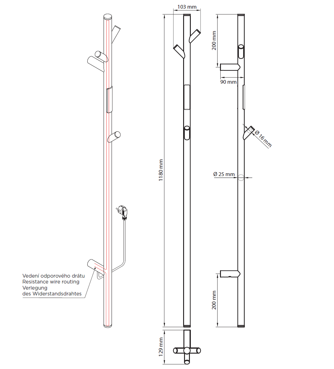 Электрический полотенцесушитель стойка мини, 30W, нержавеющая сталь, графит