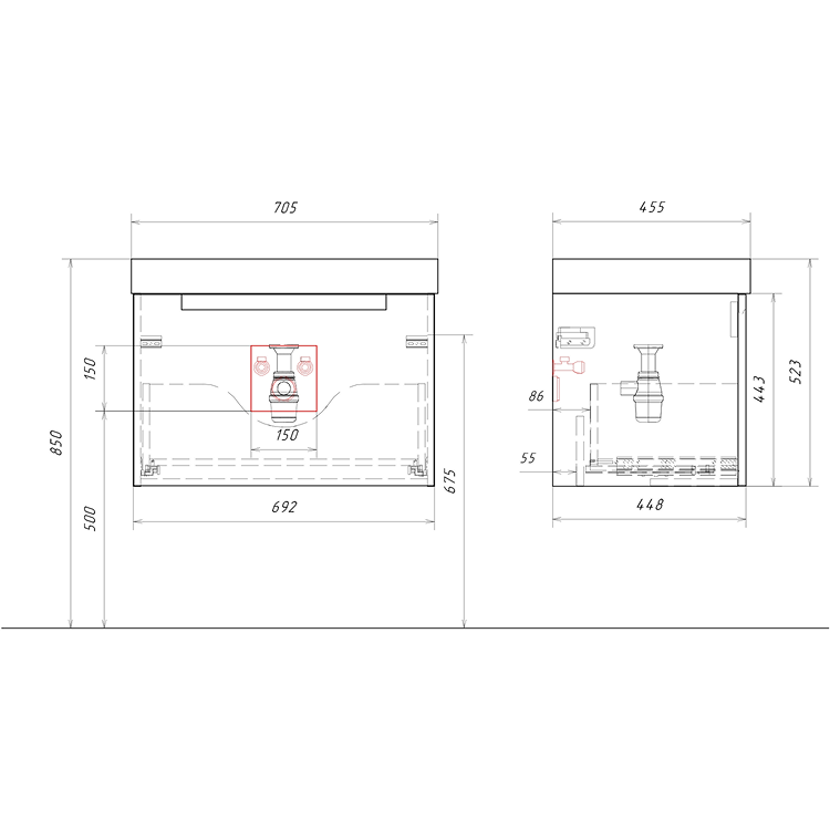 Подвесная тумба 70 см