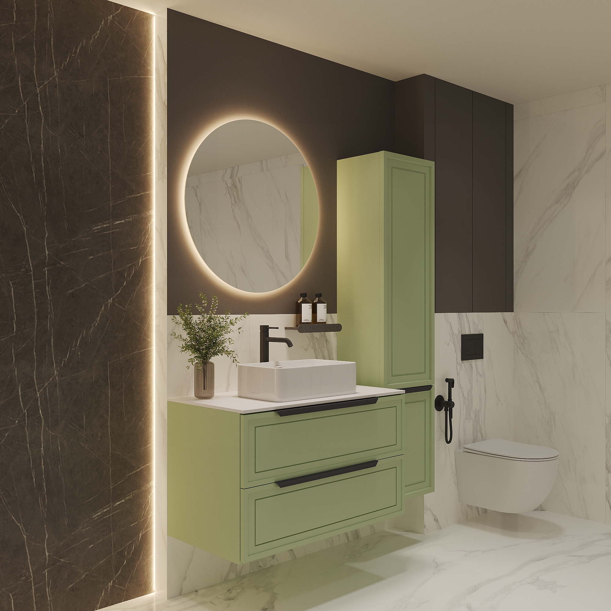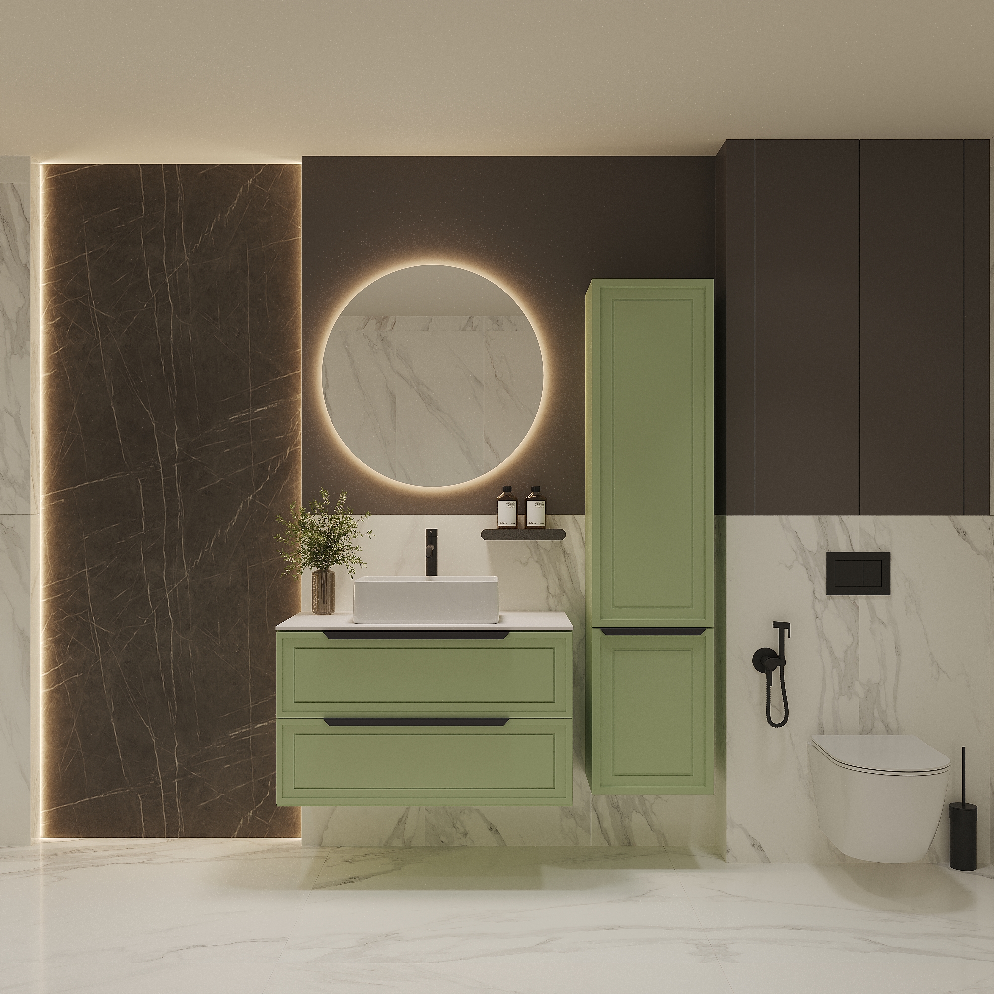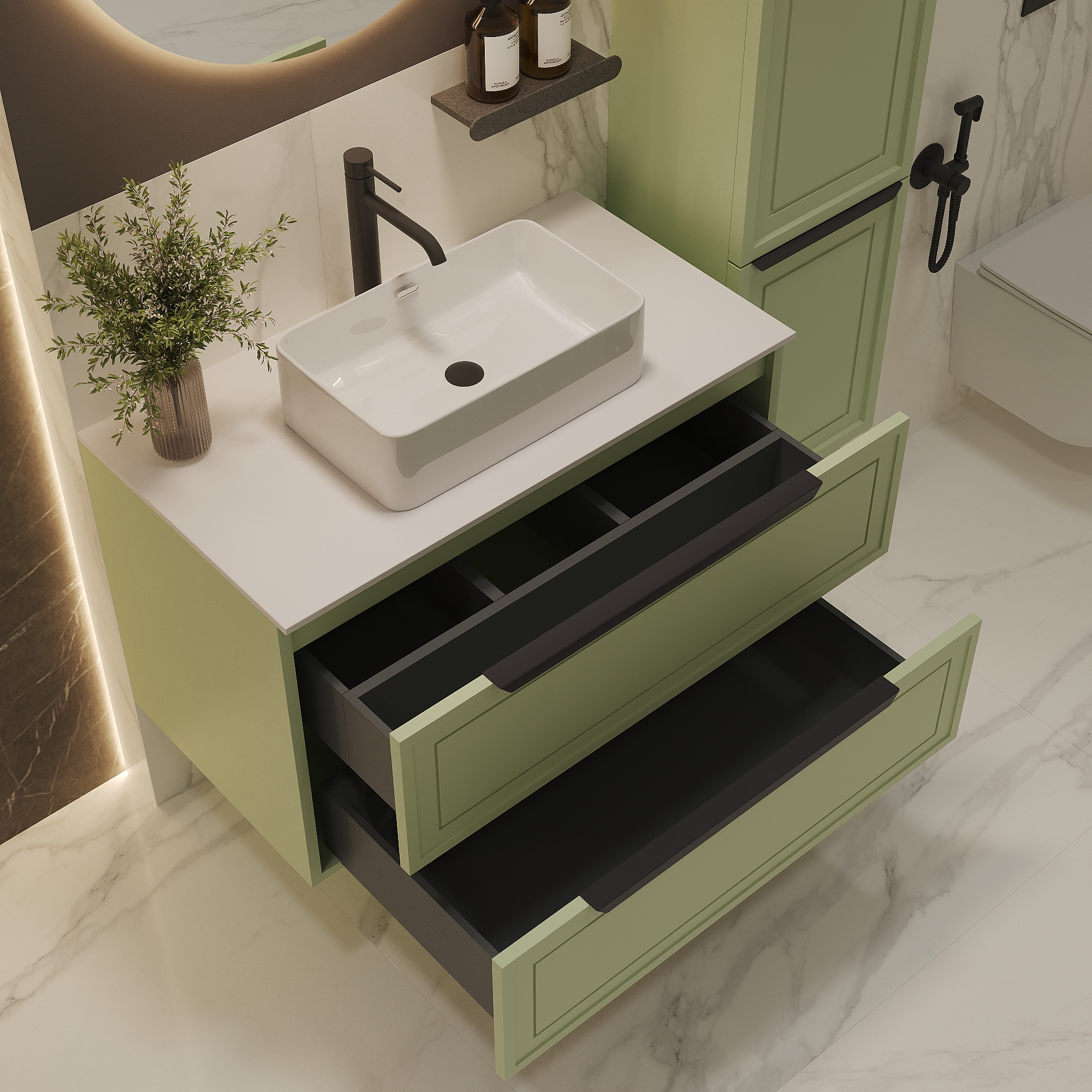 Тумба со столешницей Севилья 100, Фисташковый / Столешница компакт-плита, Белая