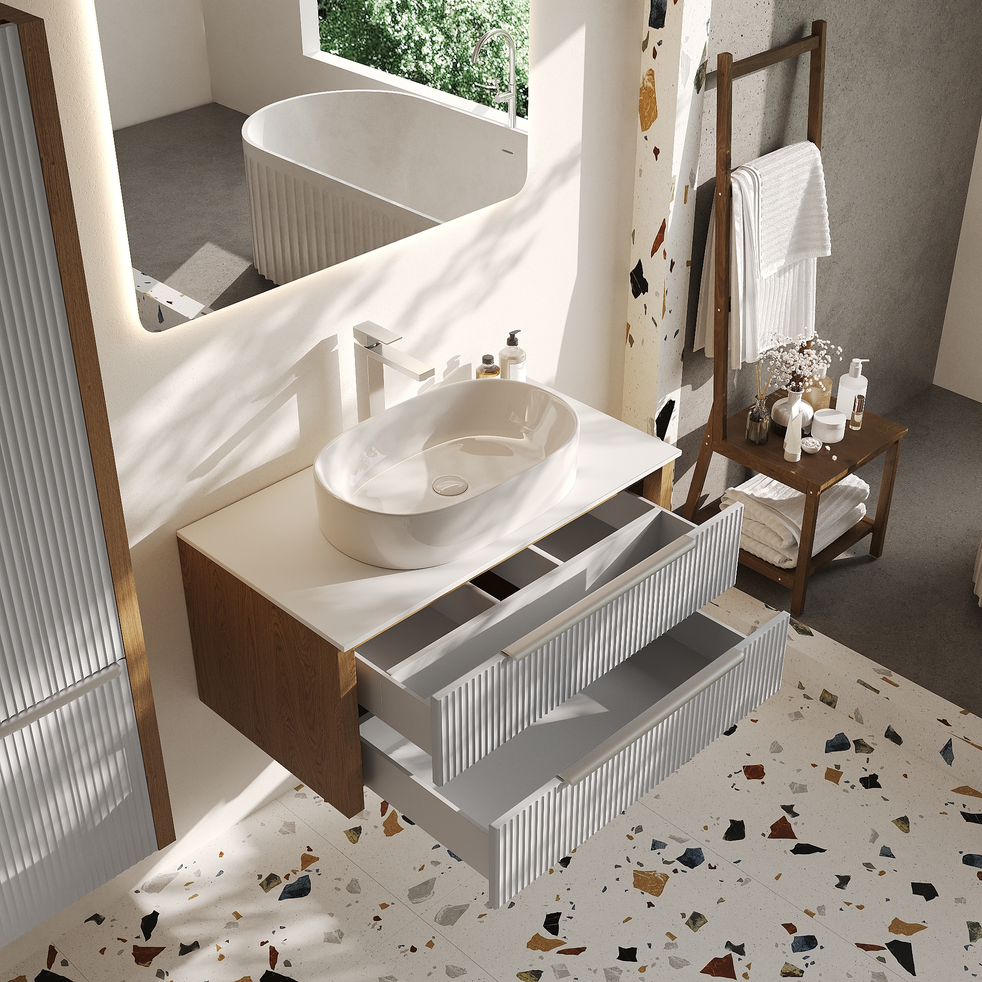 Тумба со столешницей Валенсия 100, Камень / Столешница компакт-плита, Белая