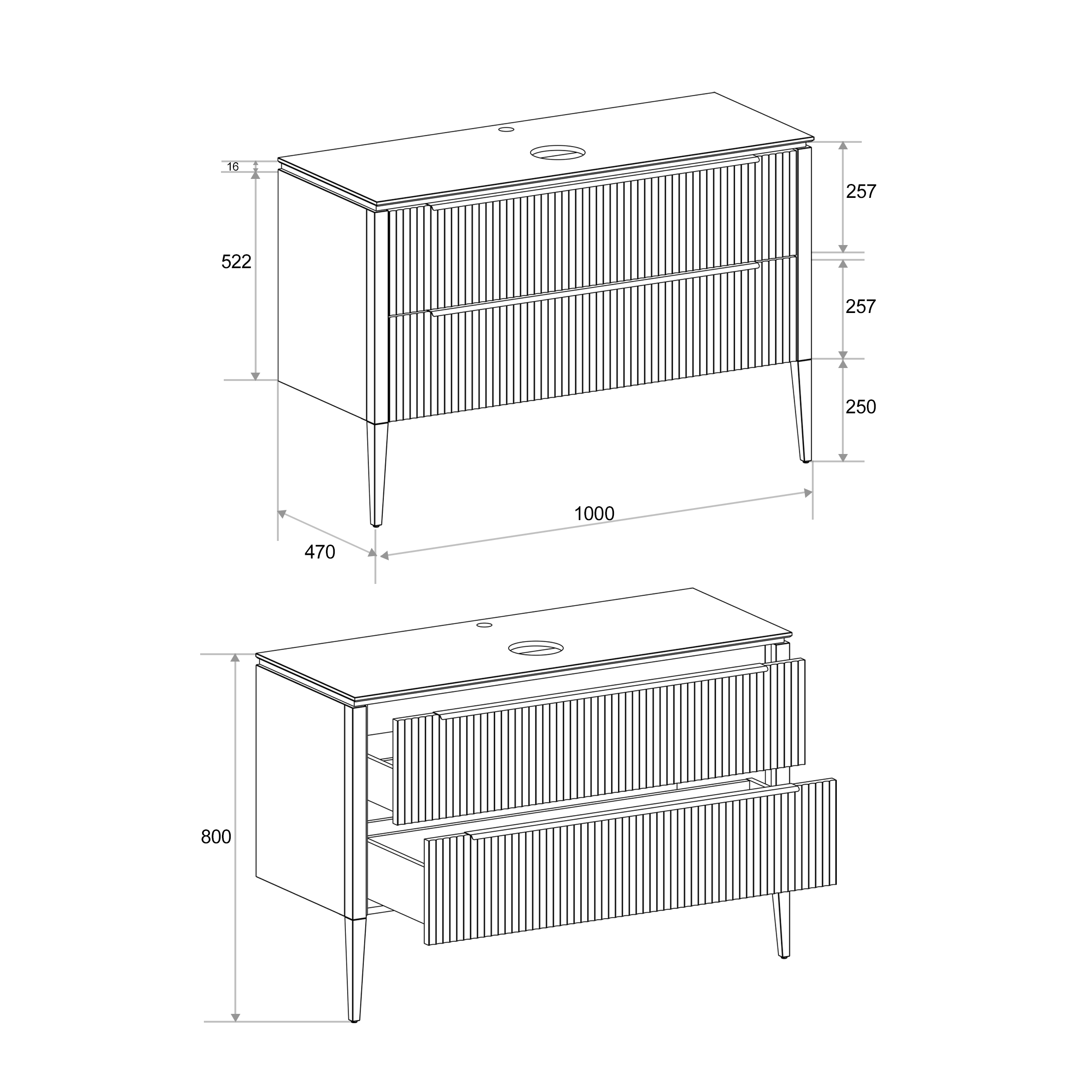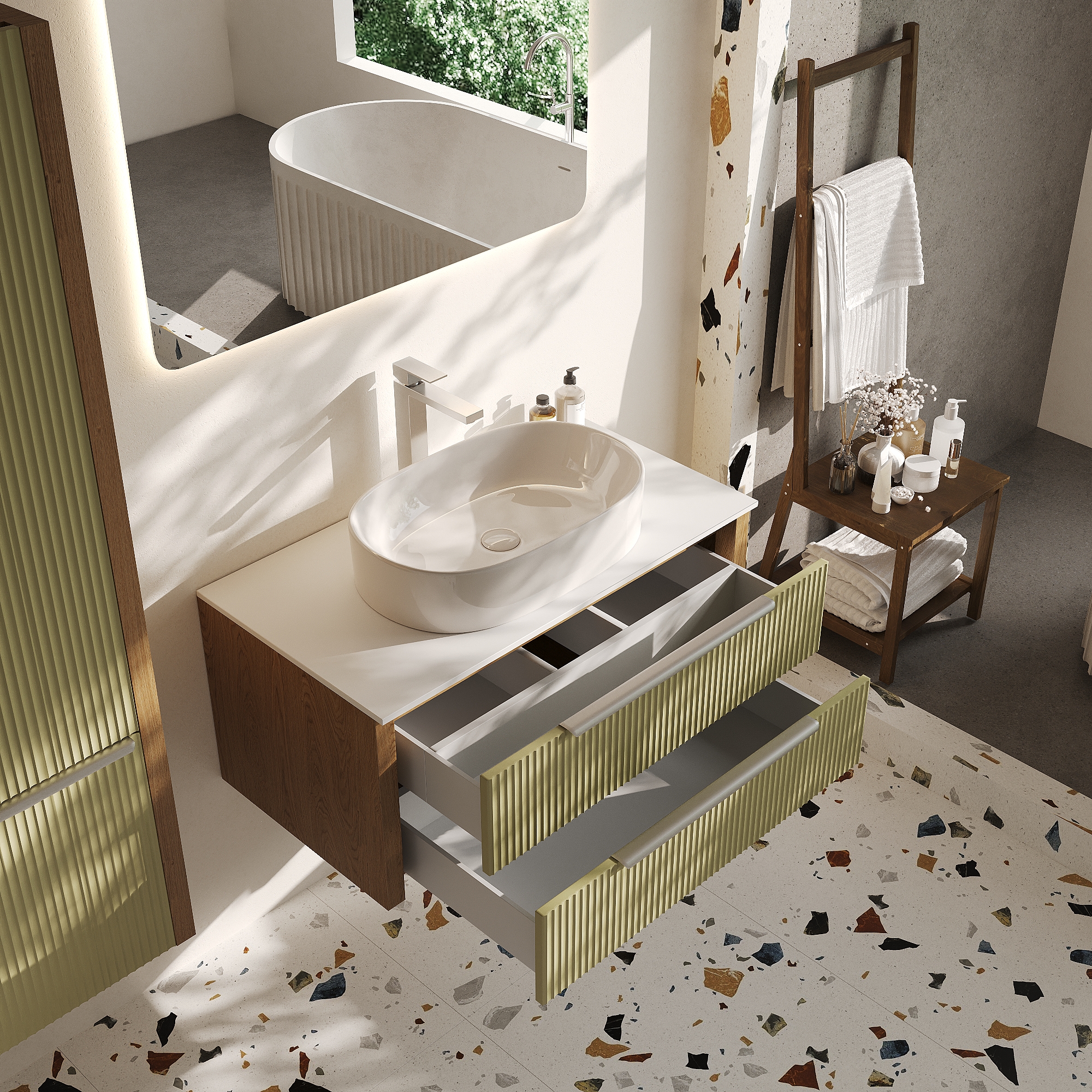 Тумба со столешницей Валенсия 100, Зеленый тростник / Столешница компакт-плита, Белая