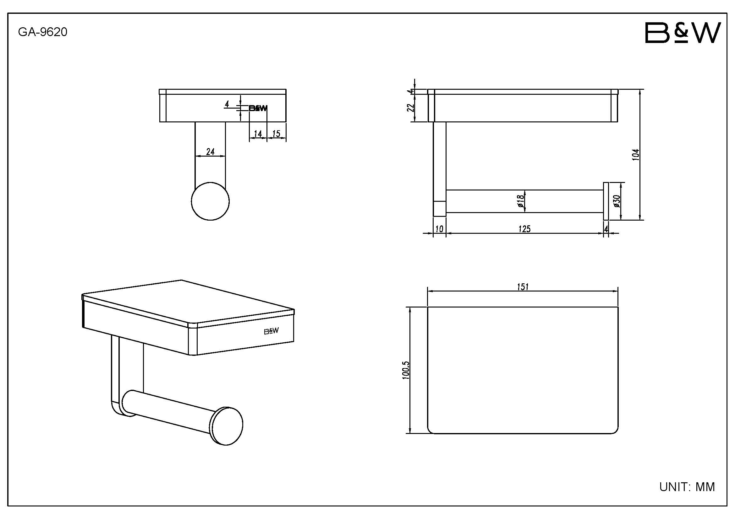 Полка и держатель для туалетной бумаги Black&White 9620gm