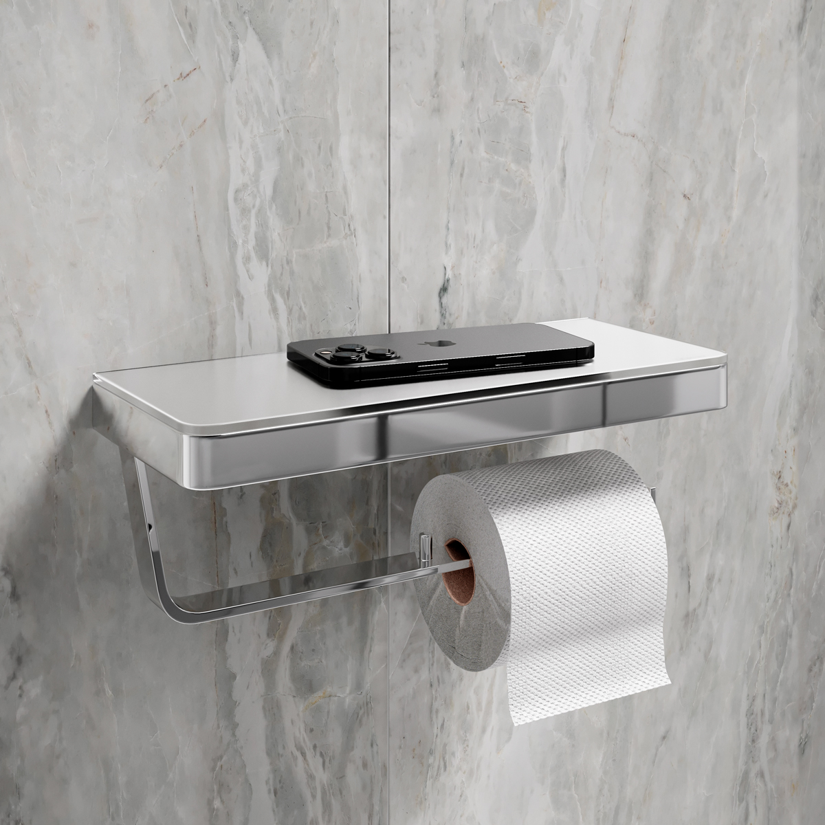 Двойной держатель для туалетной бумаги Lemark GLASS LINE с полкой, хром/белое стекло (9721040)