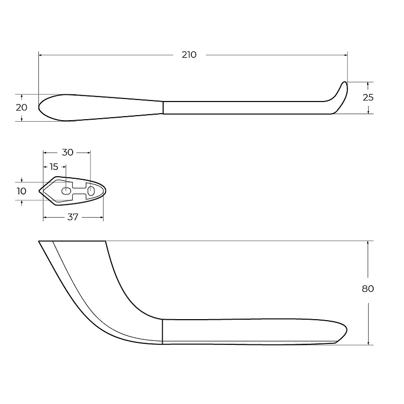 - Размеры (ШхВхД): 210х25х80 мм.