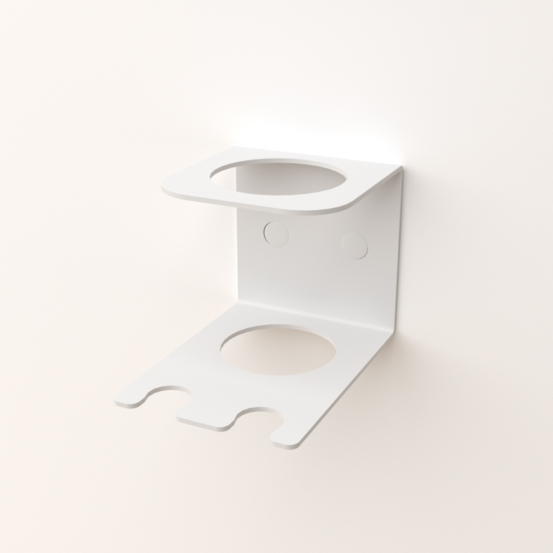 Держатель может быть закреплен на стене с помощью шурупов или с помощью двухстороннего скотча (перед приклеиванием необходимо обезжирить поверхность).