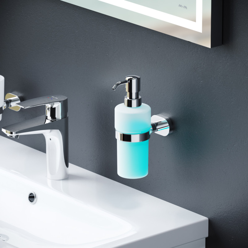 A7436900 Sense L, Стеклянный диспенсер для жидкого мыла с настенным держателем, хром