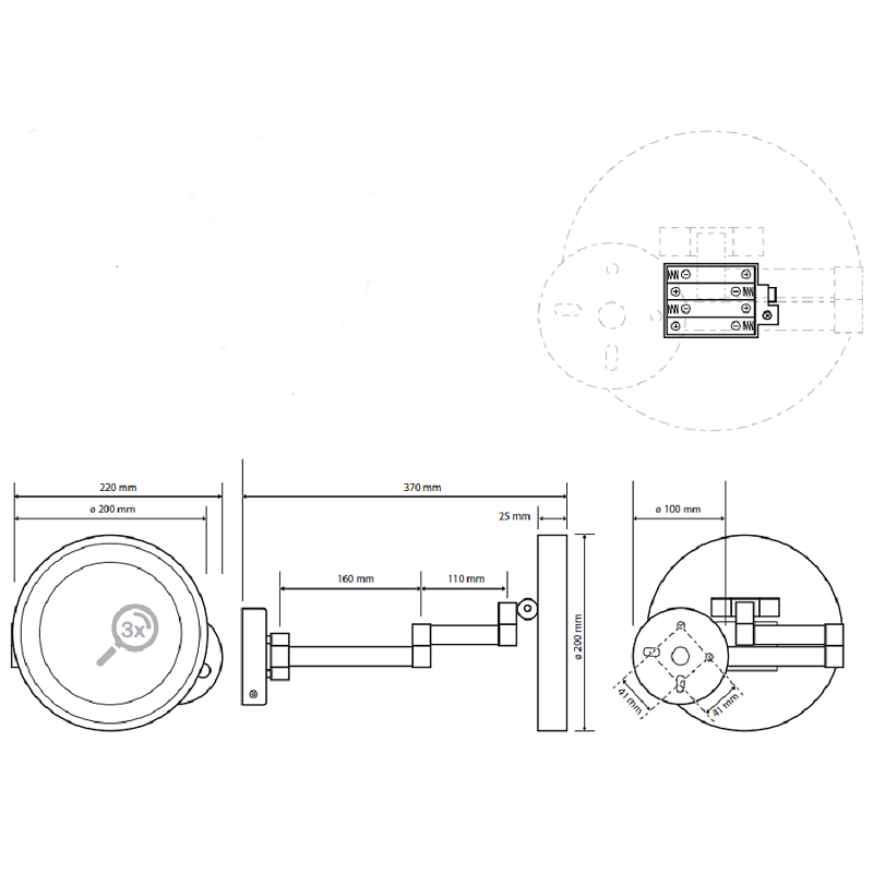 Косметическое зеркало Bemeta Cosmetic mirrors 116301142 со светодиодной подсветкой, 3-х кратное увеличение.
