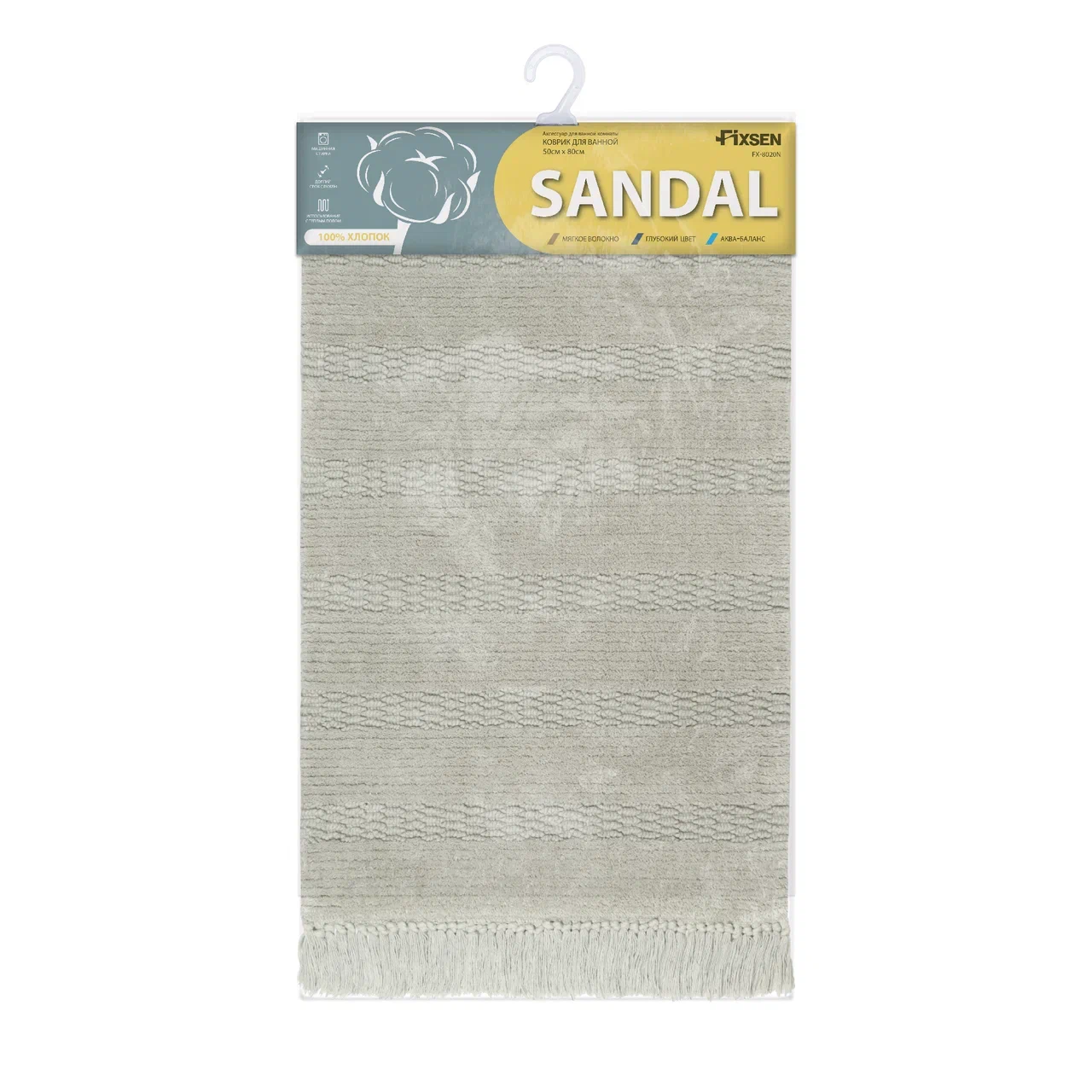 Коврик для ванной 1-ый Fixsen SANDAL, светло-серый, 50х80см (FX-8020N)