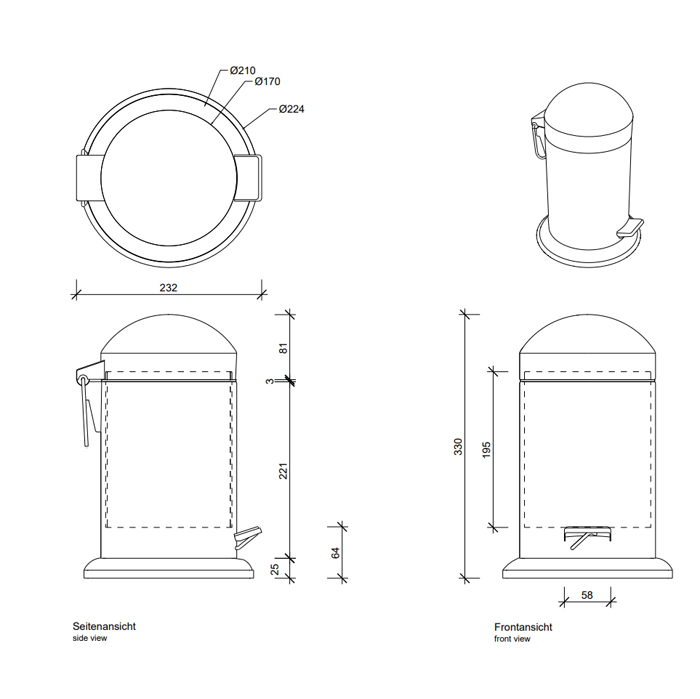 DECOR WALTHER TE 30 Ведро 17xh31см, с педалью и крышкой, цвет: сталь полированная