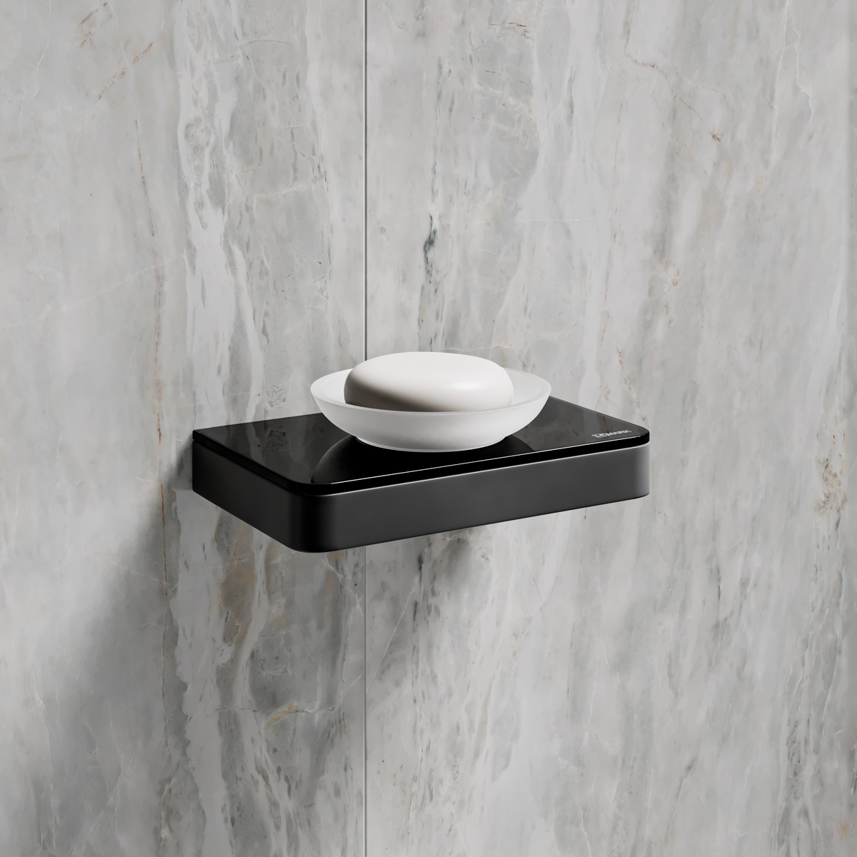 Мыльница Lemark GLASS LINE с держателем, чёрный матовый/черное стекло (9742039)